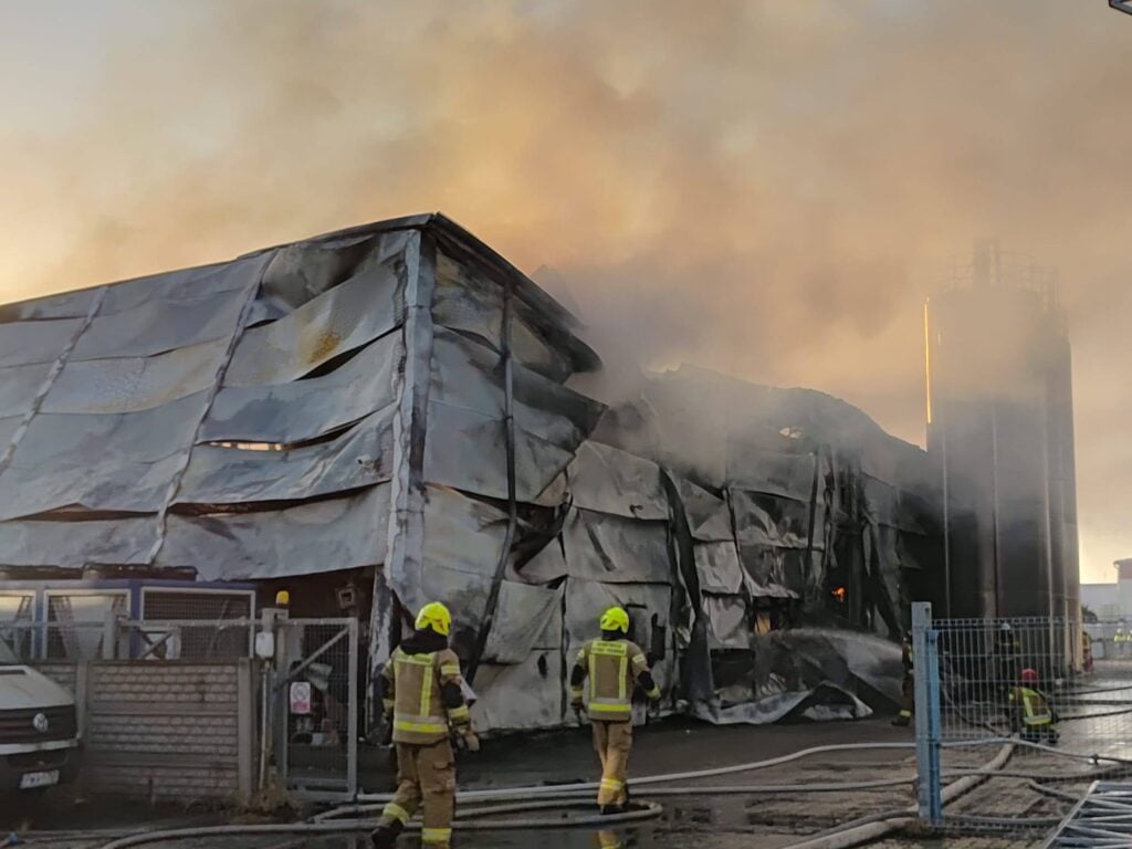 Groźny pożar w zakładzie chemii w Wągrowcu. Ogień objął 1600 metrów kwadratowych
